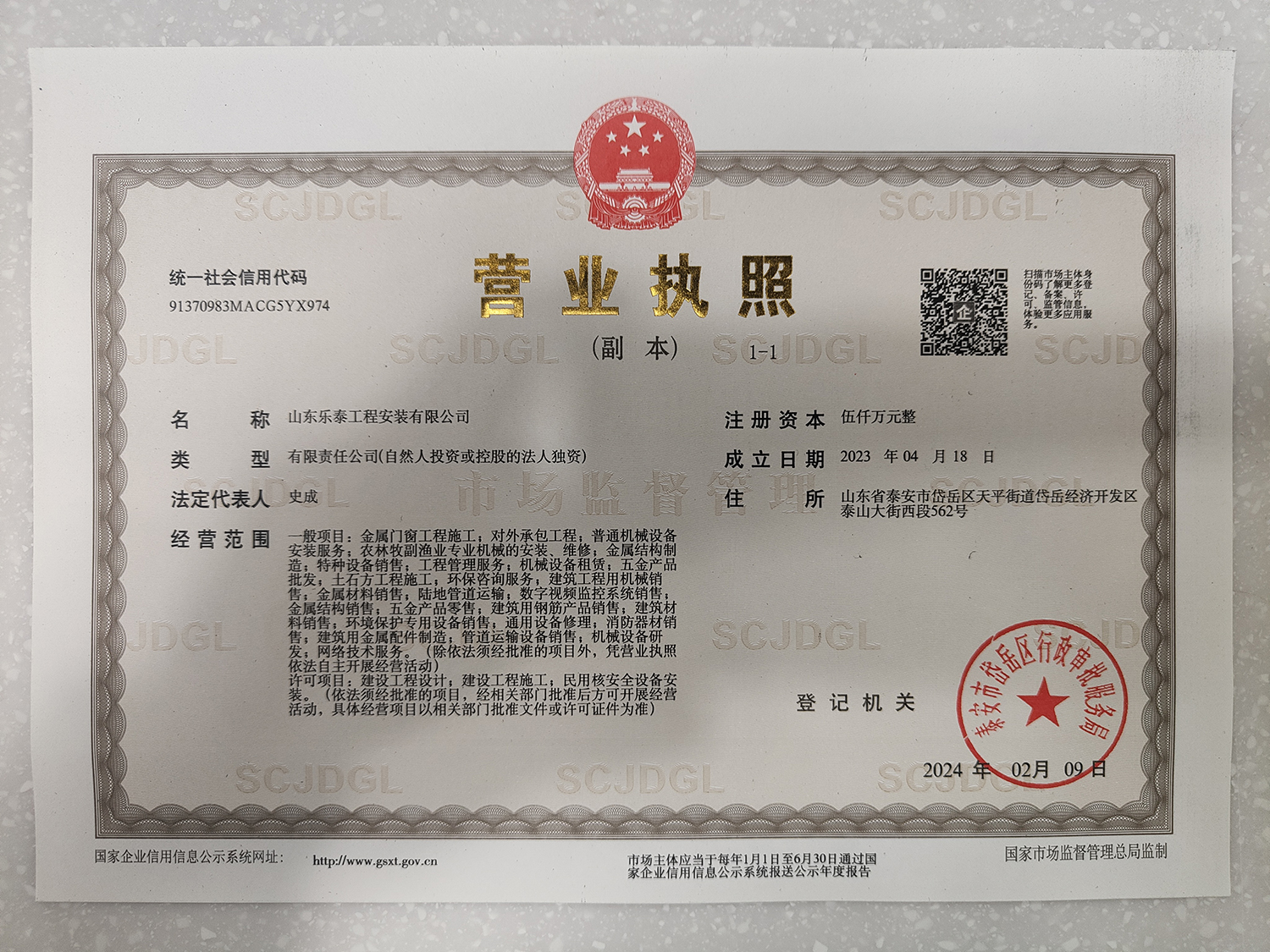 營業執照(副本)